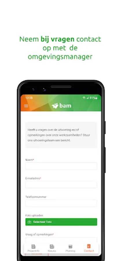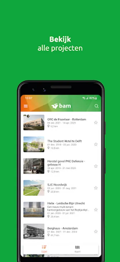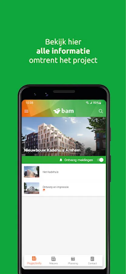 In the environment app 'BAM builds' you will find project information about new buildings and renovations of buildings in the Netherlands.