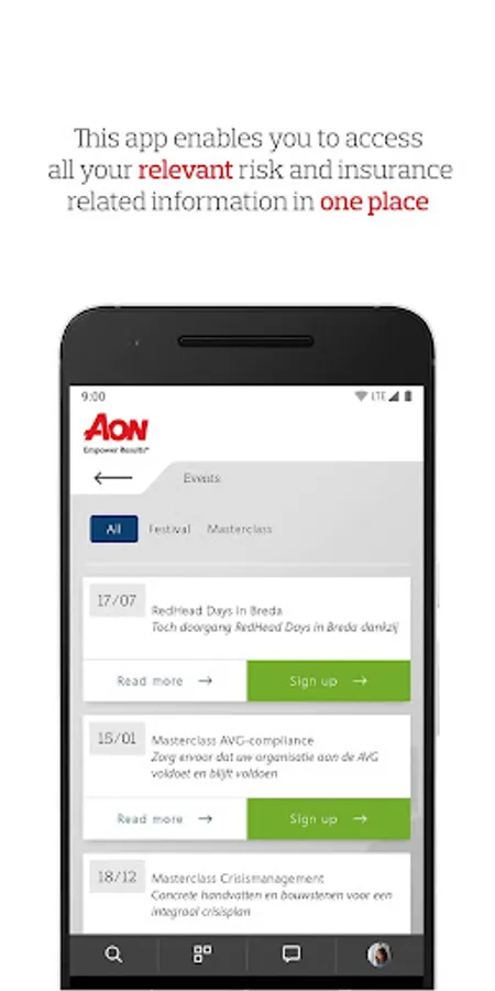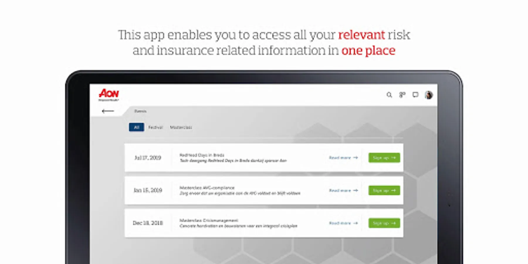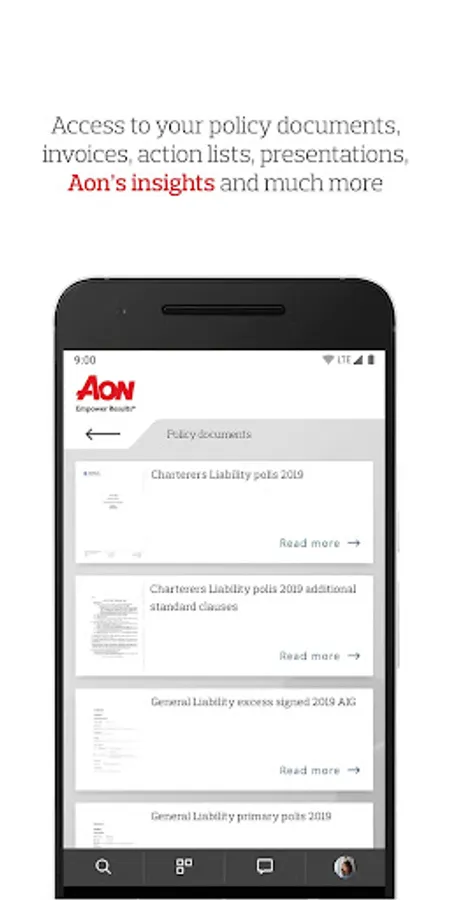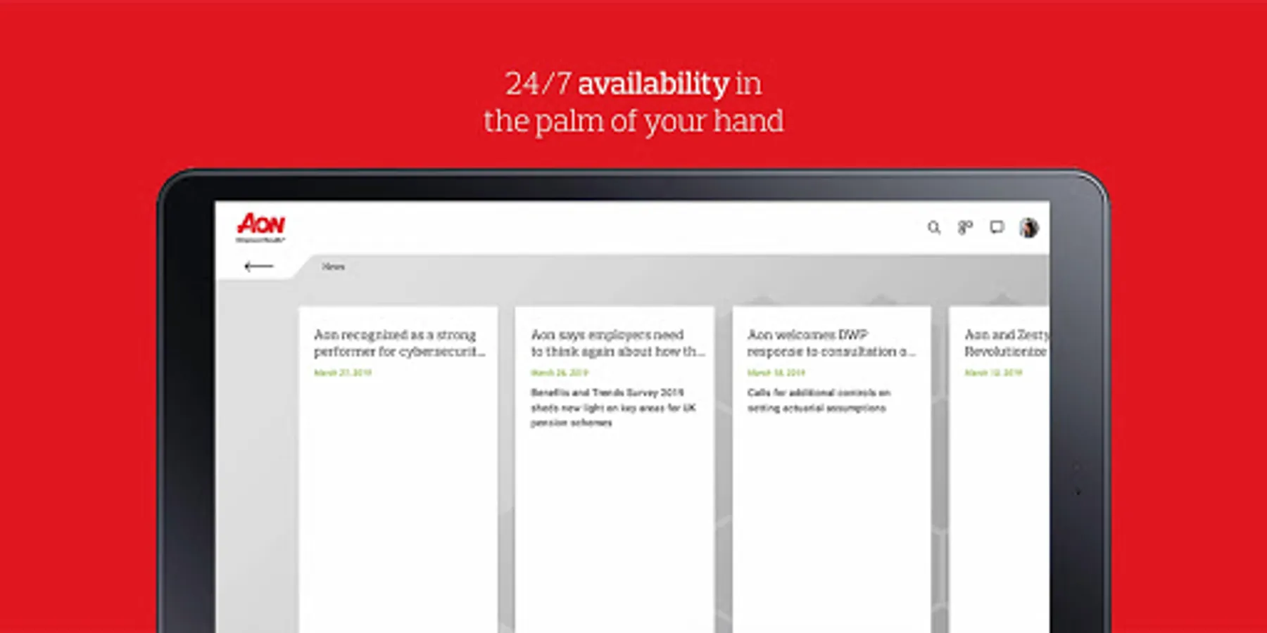 Download this free app for access to your policy documents, invoices, action lists, presentations, Aon’s insights and much more.