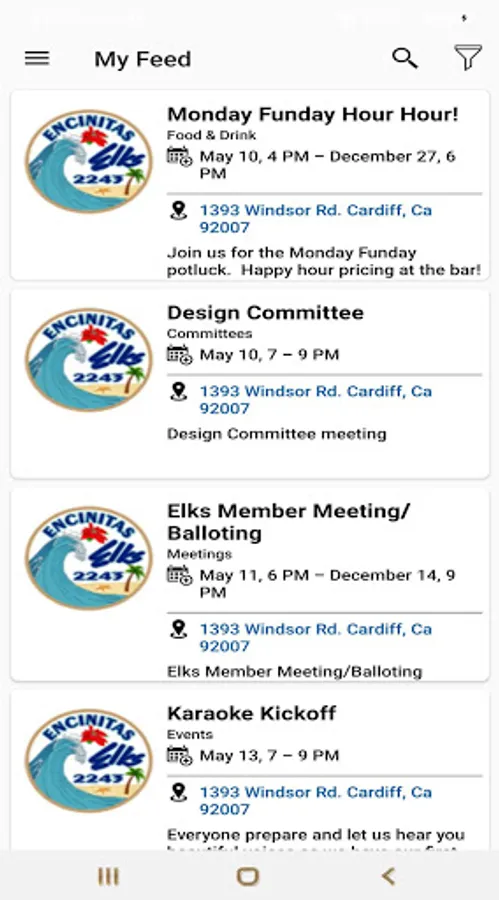 Stay connected! The Encinitas Elks app is your portal for news, events, sign ups, contact info, updates, and more. Best of all, you filter your own content using preferences so the app will only notify you when there is something new that you are interested in