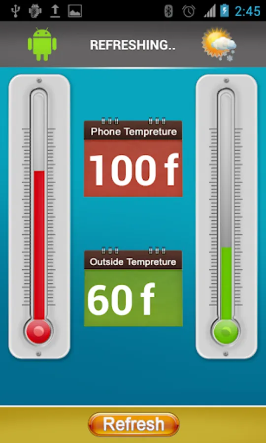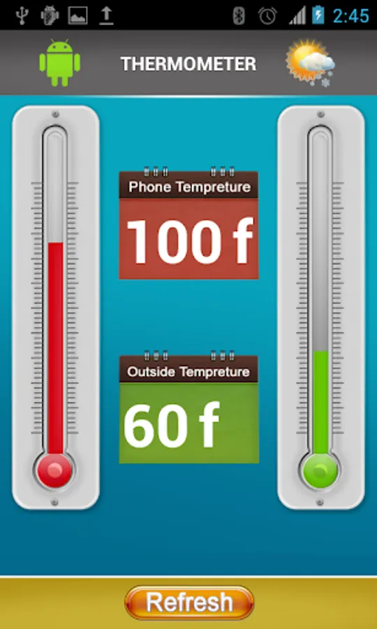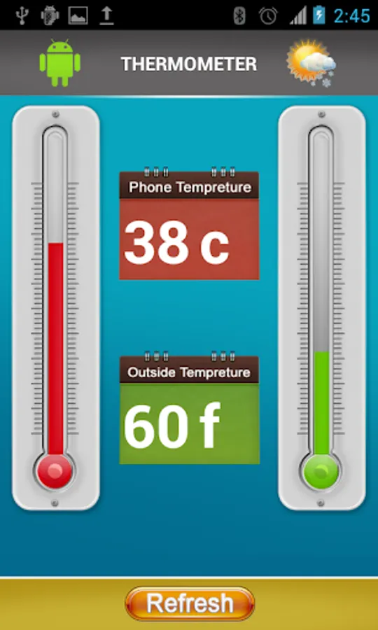 Click on the refresh button to refresh the temperature data! Click on the temperature numbers to switch between the Celsius and Fahrenheit.