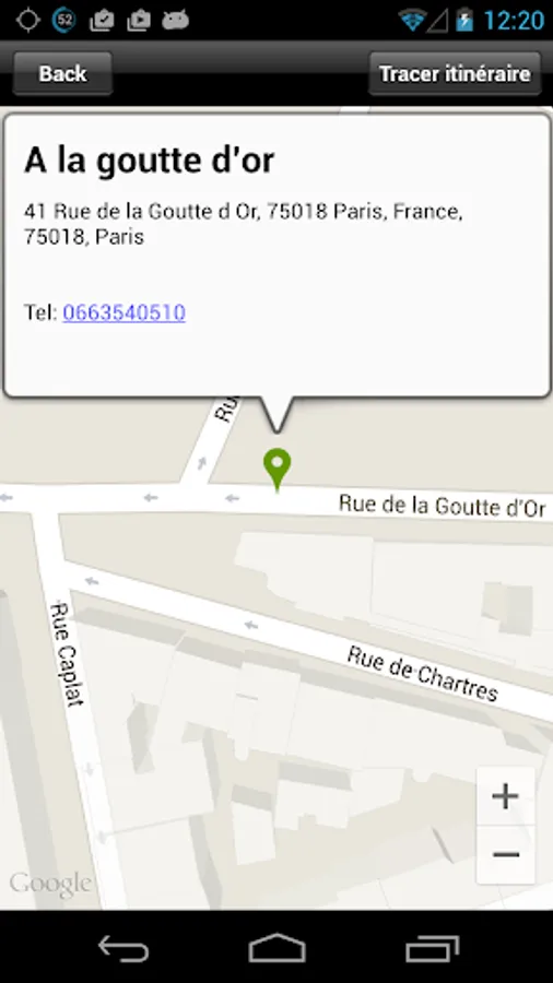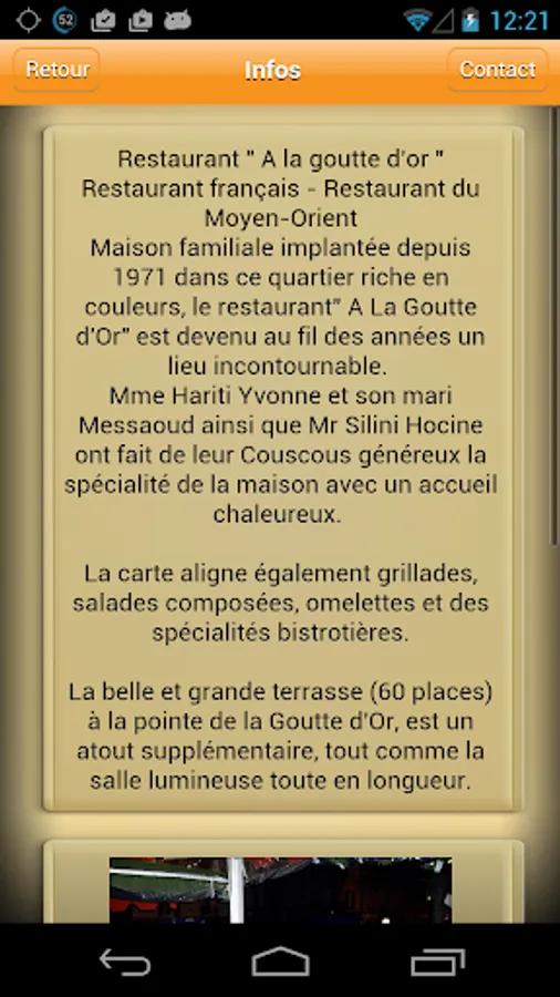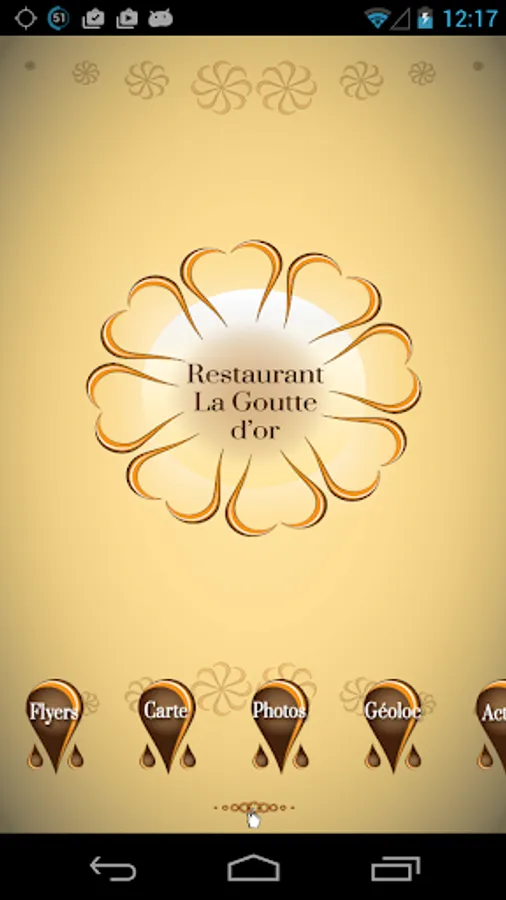 The application "A drop of gold" offers you the ability to view all facts in the restaurant (Rates, map, reviews ...) but also get the latest News and Flyers as push notifications.