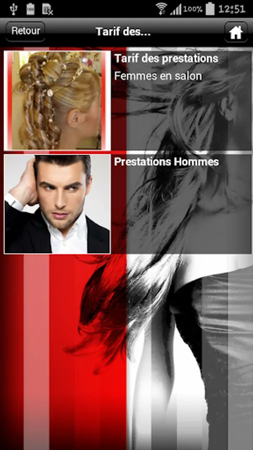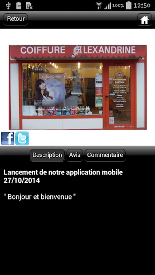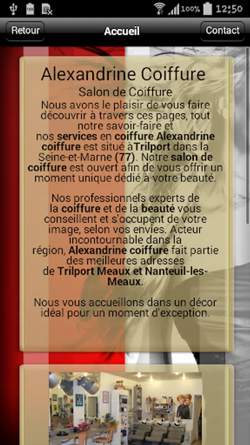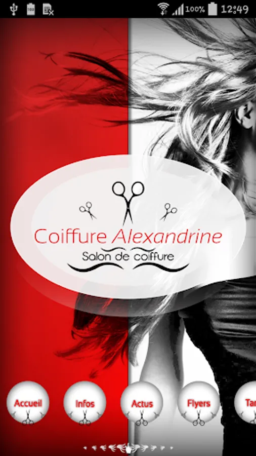 The application "Alexandrine Hairdresser" offers you the ability to view all relevant information of the event (Rates, services, reviews ...) but also get the latest News and Flyers in the form of push notifications.