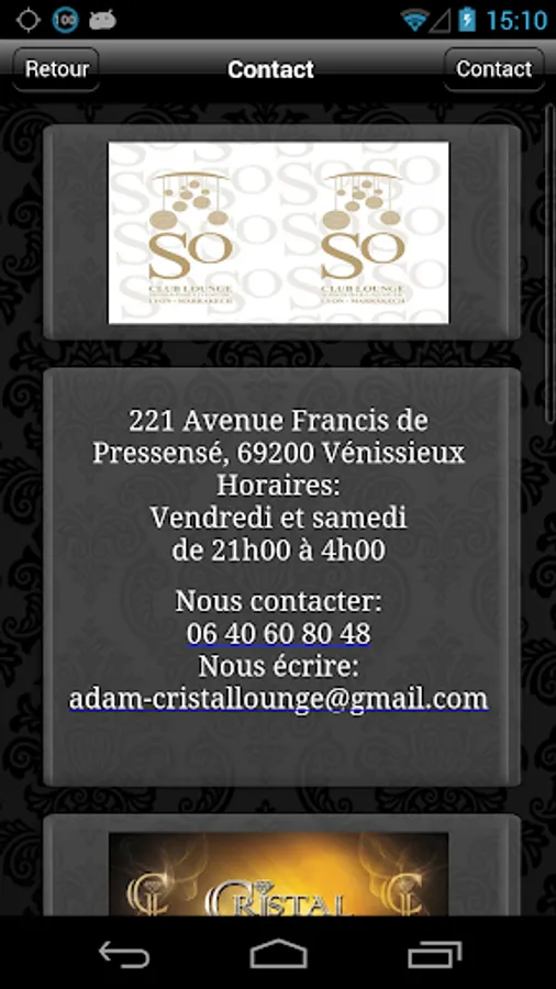 The application "CL Events" offers you the ability to view all the facts of your favorite places (Rates, map, reviews ...) but also get the latest news or Flyers in the form of push notifications.