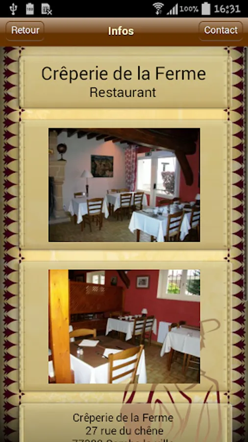 The application "Pancake Farm" offers you the ability to view all facts in the restaurant (Rates, map, reviews ...) but also get the latest News and Flyers in the form of push notifications.