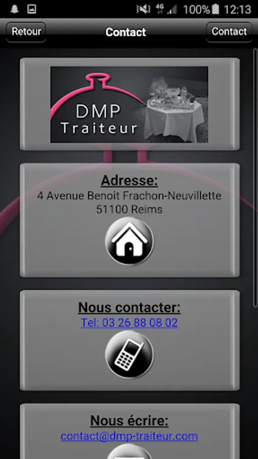 The "DMP Catering" offers you the ability to view all the facts of the restaurateur / caterer (prices, products, service, view ...) but also get the latest News and Flyers as push notifications.