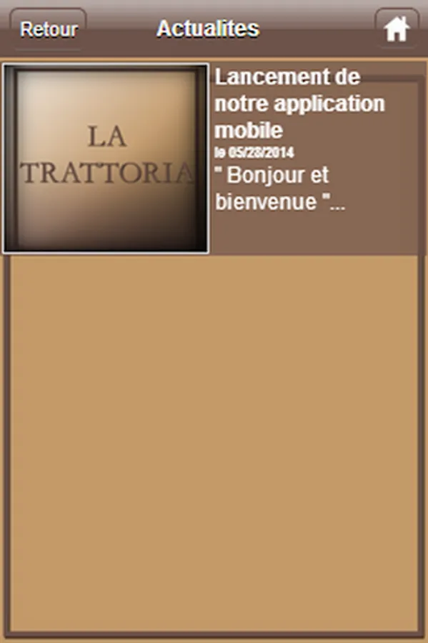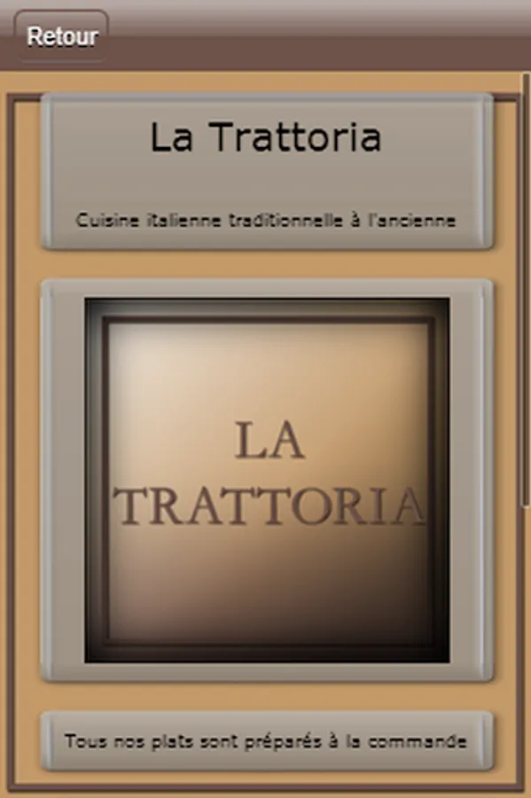 The application '"La Trattoria" offers you the ability to view all facts in the restaurant (Rates, care, advice ...) but also to receive their latest news or Flyers as push notifications.