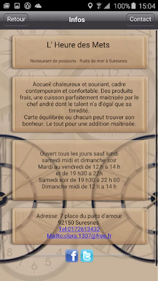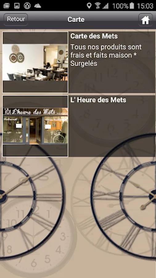 The application "The time for food" offers you the ability to view all the facts of the Restaurant (Rates, products, reviews ...) but also to receive their latest news or Flyers as push notifications.