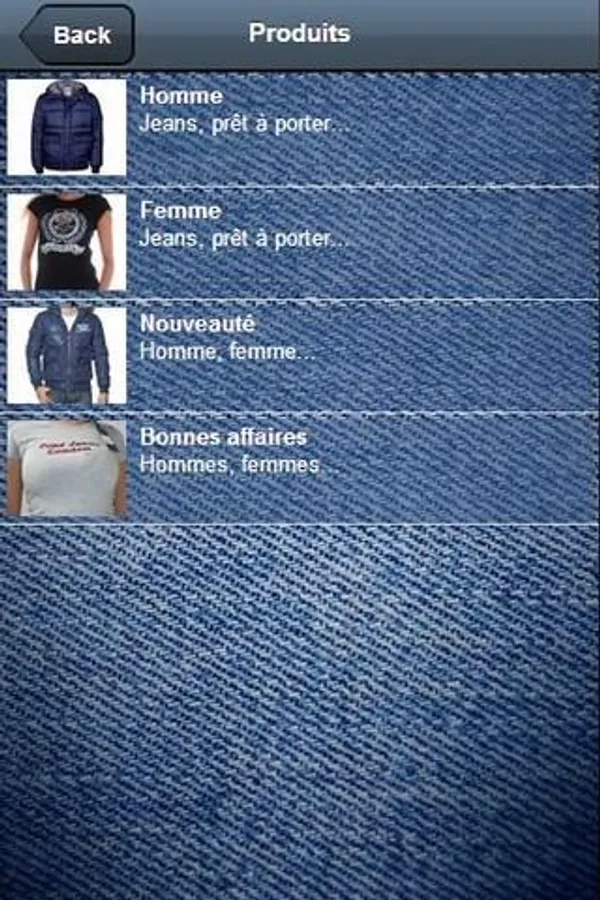 The application "Jeans Sale" offers you the ability to view all of our products (catalog, photos, reviews ...) but also receive our latest News and Flyers in the form of push notifications.