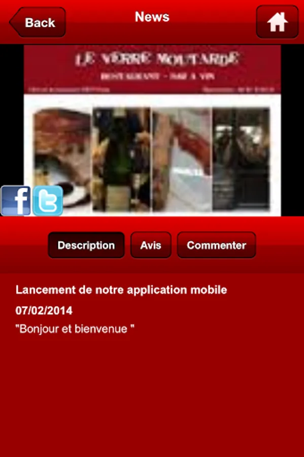 The application "The Glass Mustard" offers you the ability to view products offered as well as complete information of the restaurant (products, photos, reviews ...) but also receive our latest News and Flyers as push notifications.