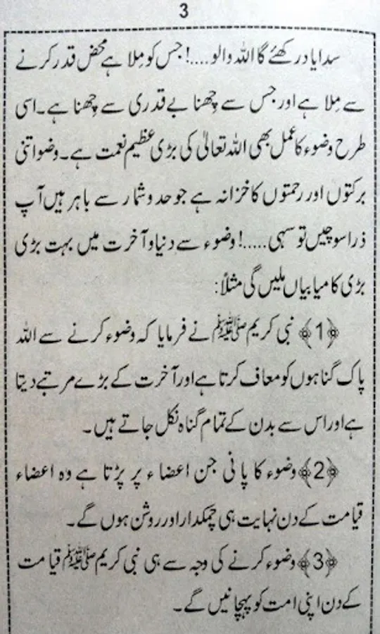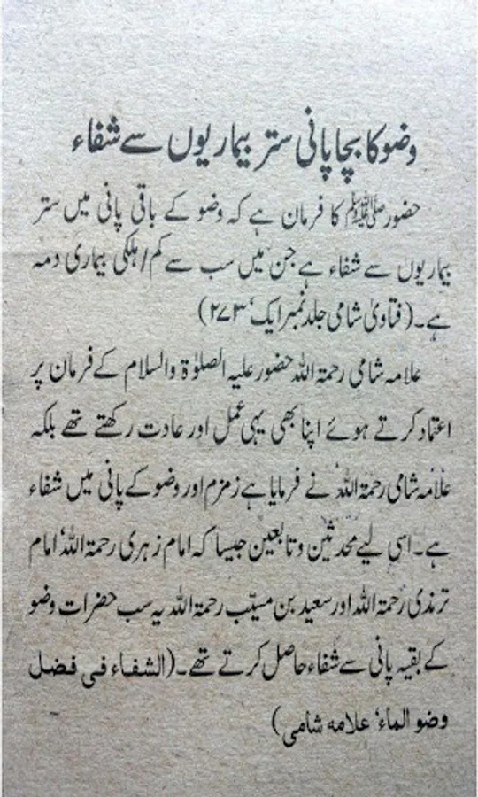 This app contains Wazu Ke 3 Ghont Ki Barkat. a treatment with wazu of many human dieseas, Drink water after Wadu benefits,wazu se ilaj,na shukri me hifazat ki dua,scinctfic research on water of wadu,how to drink water after wazu,farahiz,sunatein,tariqa,muztahabat aur adab,miswak kerna,bacha huwa pani se bimari se shifa,shadeed ansi ka khatma,hadiyun ki tb ka khatma,gurdon kay dard ka khatma,sar dard ka ilaj,pait ke dard ka ilaj,mun ke chalon ka ilaj,kamar dard ka ilaj,kansi ka ilaj etc and much more. This application has been made for all muslims in the world. if you like our work then keep share it and rate us.