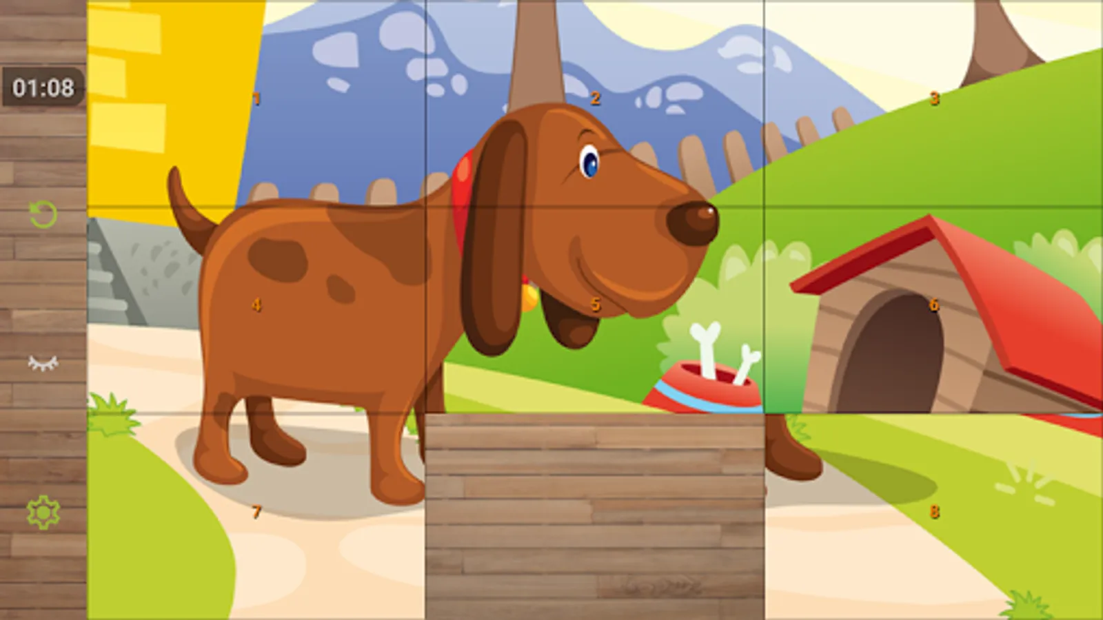 Most children usually learn the name of domestic animals in their direct surrounding, like cat or dog, in these free puzzles for kids you will also learn names of wildlife and zoo animals. The slide puzzle game is a logic game; these logical thinking puzzles are also perfect brain exercises for kids.