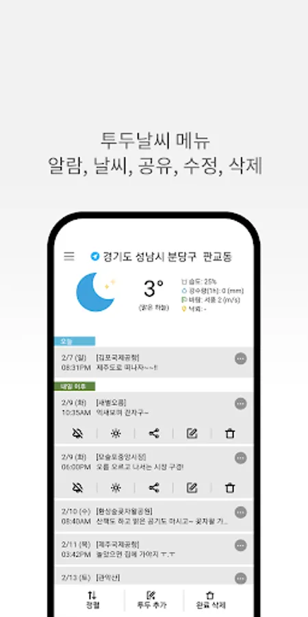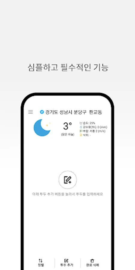 Looking for an address to check the weather in an area with your itinerary? Todou Weather is an app that allows you to manage your schedule and check the weather in the area at once with the concept of simplicity. In particular, even if you don't know the address, you can easily check the weather through the place search function.