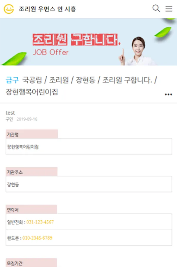 After completion of education, guide to work at daycare center, kindergarten, and local children's center in Siheung City.