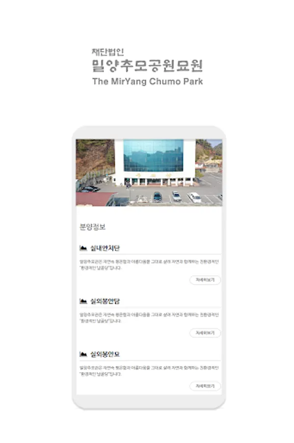 The Miryang Memorial Hall was established to play a leading role in the development of funeral/bongan culture by revitalizing the demands of the times for the change of cremation culture and government policies regarding burials and graveyards.