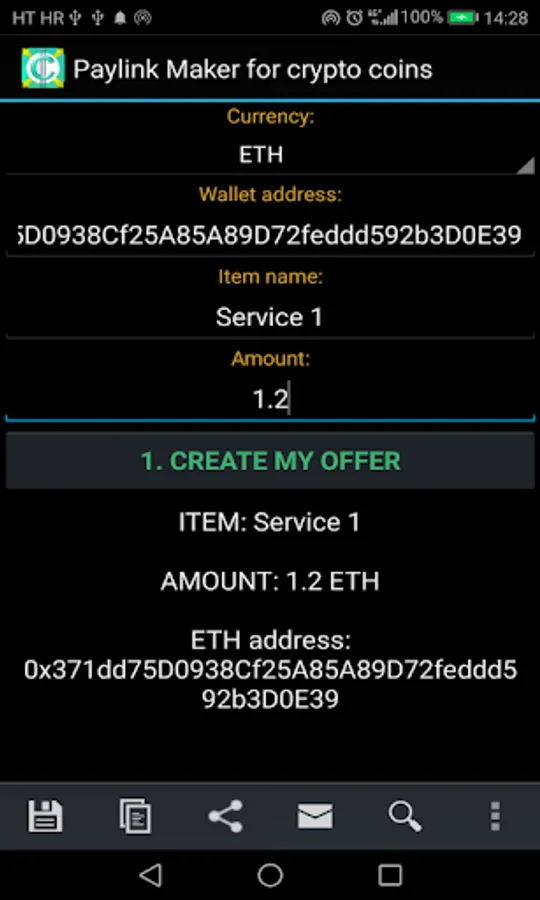 PayLink Maker for crypto app lets you easily create paylinks for selling items and products that can bring you extra money but in crypto currencies. If you need to send someone an paylink with a wallet address so anyone can pay you you don't need to search more: payment is just a click away with help of this small but powerful app!