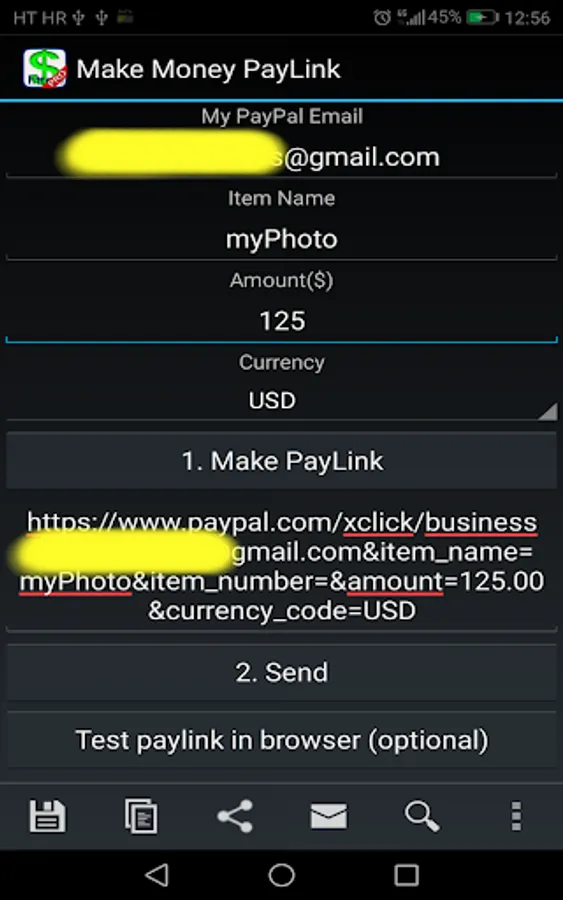 Make Money Earn Cash Paylink app lets you create and save custom paylinks so you can earn money online. You can easily send it by email to your customers or with any other social app if you need. You don't need to ask the person what their Paypal e-mail is, payment is just one click away!