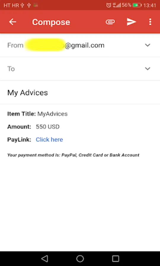 6.Send email with paylink to person that is going to pay you