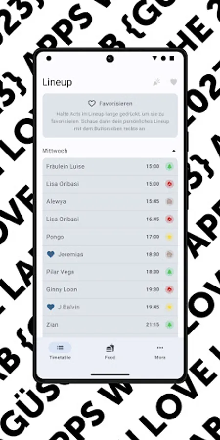 2. Personalized favourites: Mark the artists you want to see as favourites. Conveniently manage and organize your festival schedules in one place.