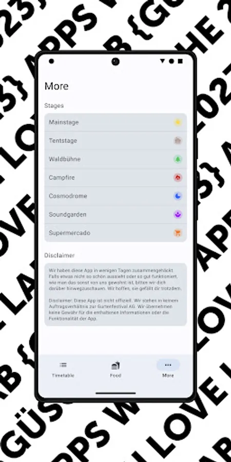 1. Lineup View: Never miss a performance by your favorite artists again! With the Güsche app you can see the full line-up. Whether it's the main stage, tent stage or forest stage - you have all the information at a glance.