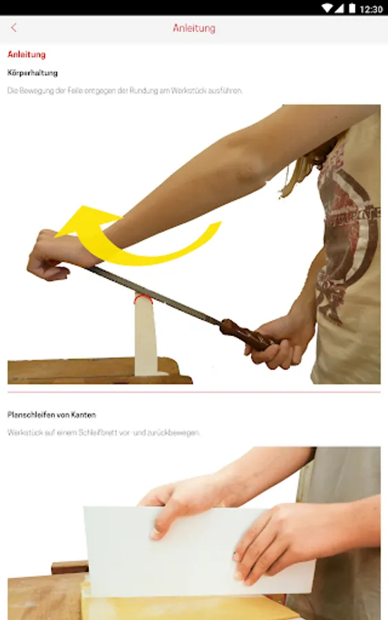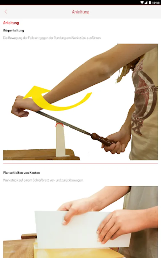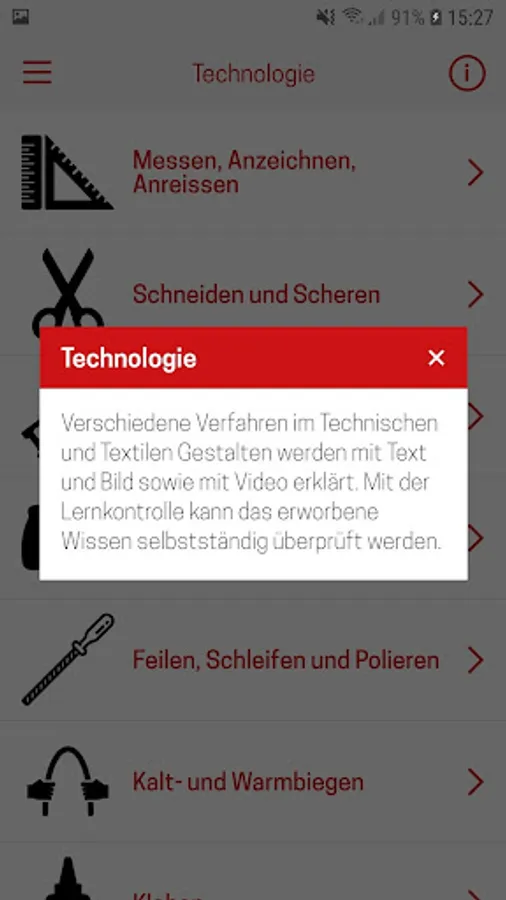 What equipment and tools you need for soldering? What is important when sewing with overlock? And what it takes to make paper? In this app you'll find answers to these and many other questions on the subjects of "art" and "design" -in the form of texts, images and videos. Your own work from the technical and textiles figures you can document and share them with others in a project journal.