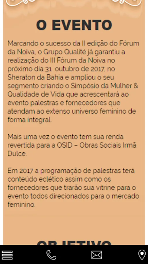 Marcando o sucesso da II edição do Fórum da Noiva, o Grupo Qualité já garantiu a realização do III Fórum da Noiva no próximo dia 31 outubro de 2017, no Sheraton da Bahia e ampliou o seu segmento criando o Simpósio da Mulher & Qualidade de Vida que acrescentará ao evento palestras e fornecedores que atendam ao extenso universo feminino de forma integral.
