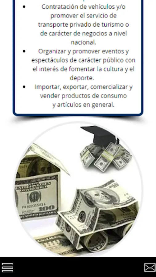 a brindar servicios en las áreas de turismo, créditos, inversiones, jurídico, proyectos y mercadeo. Reduciendo distancias entre las empresas y los usuarios finales a través de diferentes representaciones comerciales que hacen parte de nuestro amplio portafolio de servicios con un equipo de trabajo dispuesto a brindar soluciones que se adaptan fácilmente a las necesidades y presupuesto de nuestros clientes.