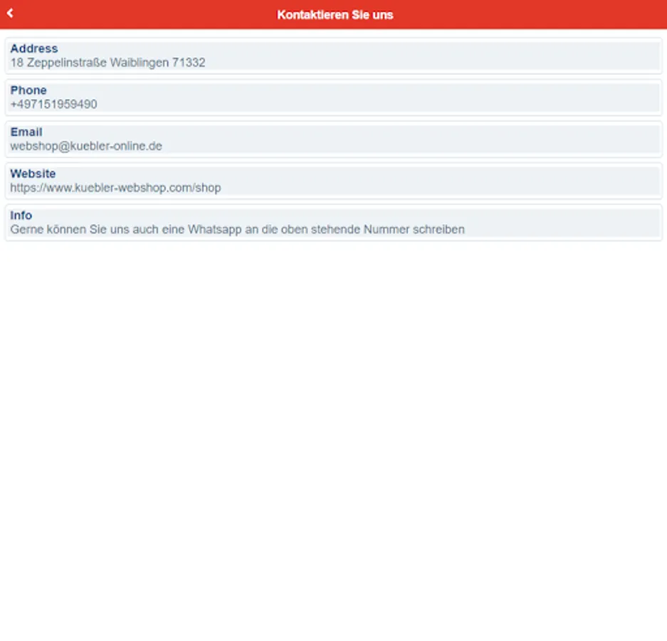 Sie haben Fragen oder Probleme mit der App? Melden Sie sich per Mail an haecker@kuebler-online.de