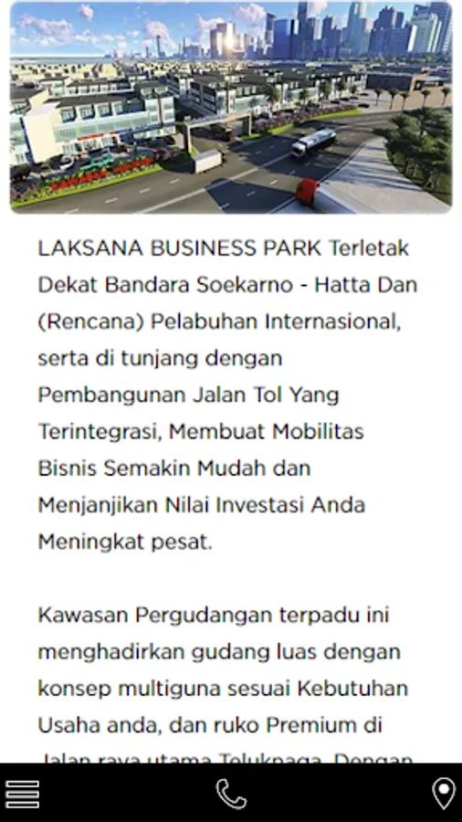 LAKSANA BUSINESS PARK Terletak Dekat Bandara Soekarno - Hatta Dan (Rencana) Pelabuhan Internasional, serta di tunjang dengan Pembangunan Jalan Tol Yang Terintegrasi, Membuat Mobilitas Bisnis Semakin Mudah dan Menjanjikan Nilai Investasi Anda Meningkat pesat.