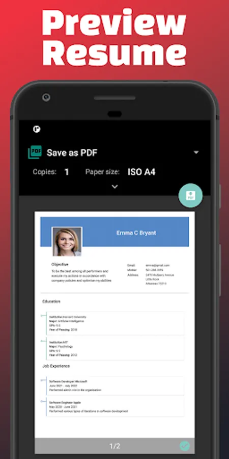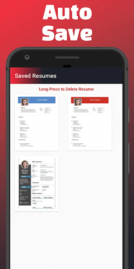 Our Resume app will help you to create your resume/CV in minutes