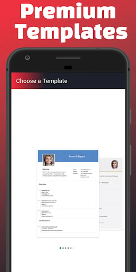 Our Resume Maker App is Easy to use.You choose one of our templates. Once you choose the template type the relevant information.
