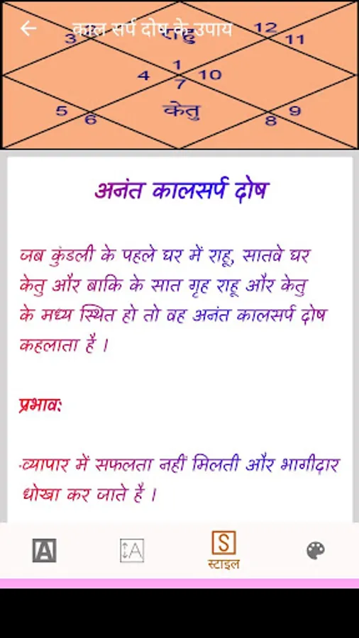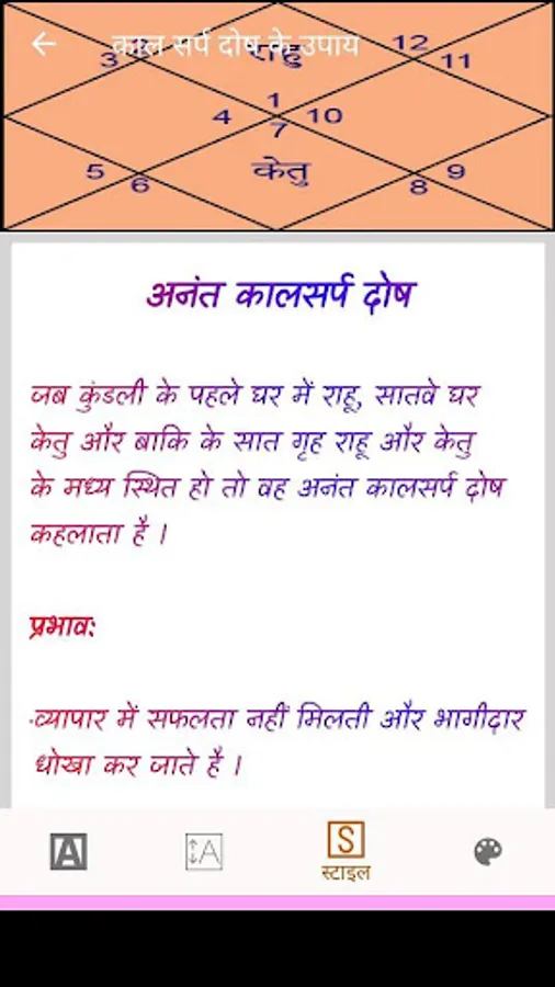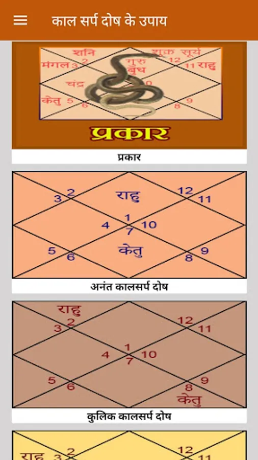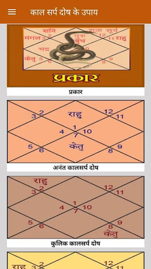 According to Indian astrology, there are twelve different types of Kalsarpa yoga or Kaalsarp Dosh. Kalsarp Dosh due to its negative implications on people's life. Depending on the positioning of Rahu and Ketu, Kal Sarp Dosh or Kalsarp Yog may bring various problems in an individual's life like; delayed marriage, losses in business, lack of self-confidence, financial problems, child problems, family problems, fear of death, legal litigation and accidents to imprisonment. In fact, this condition also prevents some good effects ensuing from the other beneficial planetary positions in the individual’s horoscope. Therefore, most people are dread Kaal Sarp Dosh.