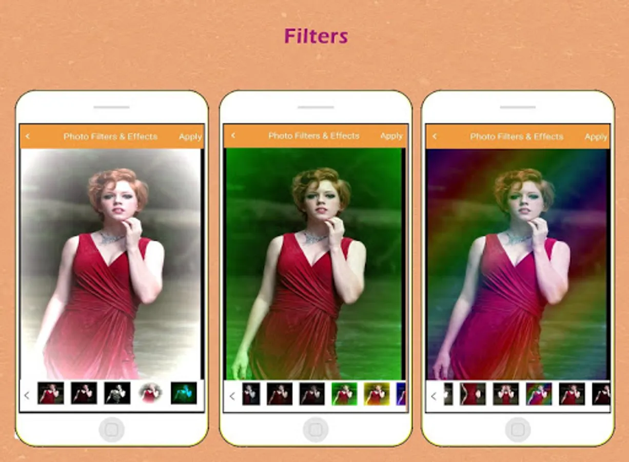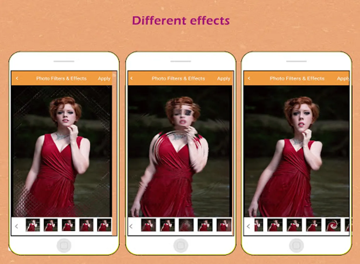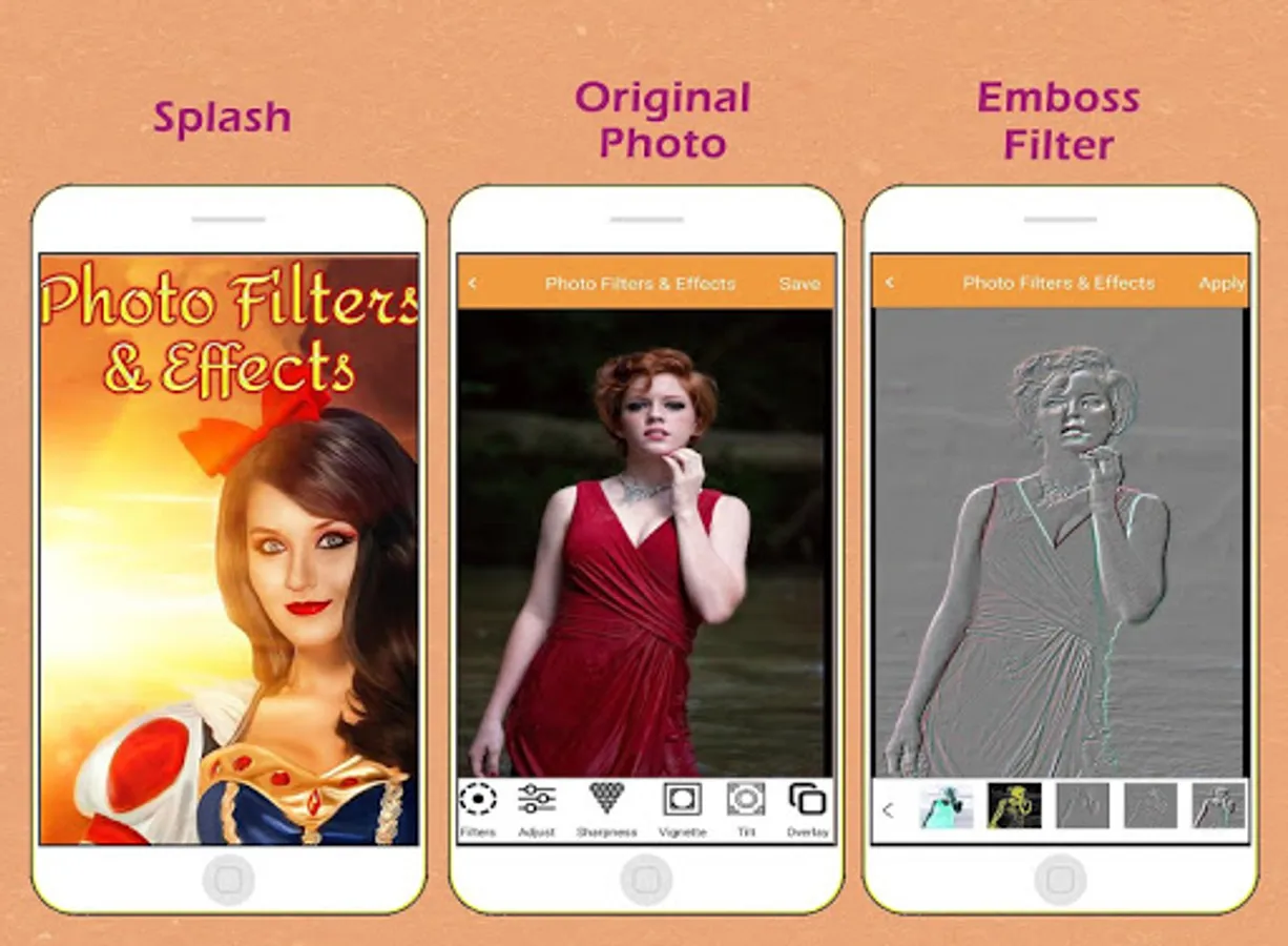 Apply Professional filters to your Photos beautiful and expressive with cool Effects like Vintage and Retro, brightness, contrast, saturation, blur, noise and more, Choose your photo , Create unique and beautiful images and Save to your Device. Try your hand at photo effects and give your photos out of this world style!