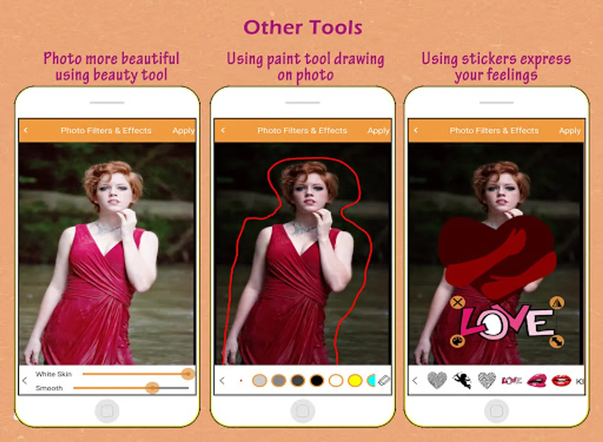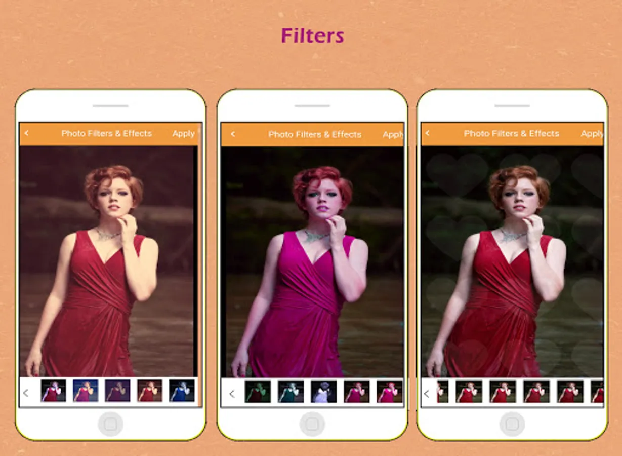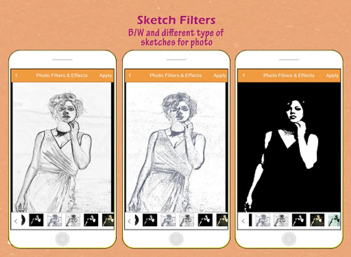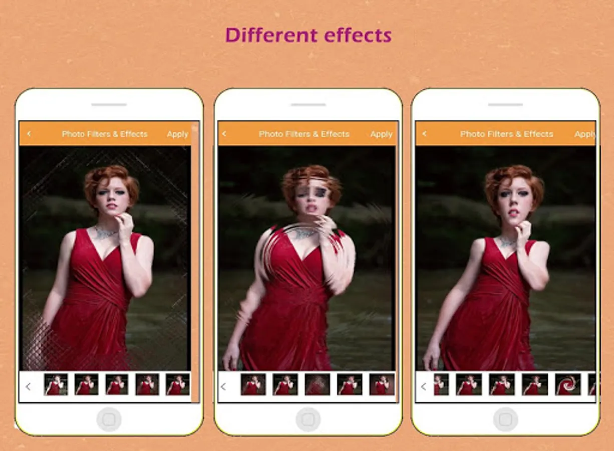 Apply Professional filters to your Photos beautiful and expressive with cool Effects like Vintage and Retro, brightness, contrast, saturation, blur, noise and more, Choose your photo , Create unique and beautiful images and Save to your Device. Try your hand at photo effects and give your photos out of this world style!