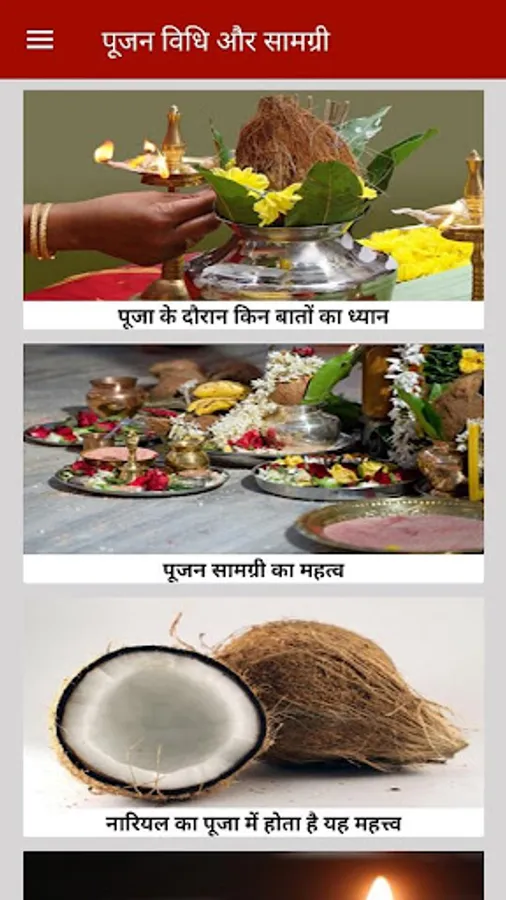 पूजा के दौरान लगने वाली चीज़ो जैसे नारियल, दीपक, पंचामृत, माला जपने की सही विधि, घंटी के महत्व के बारे में जानकारी दी गई है।