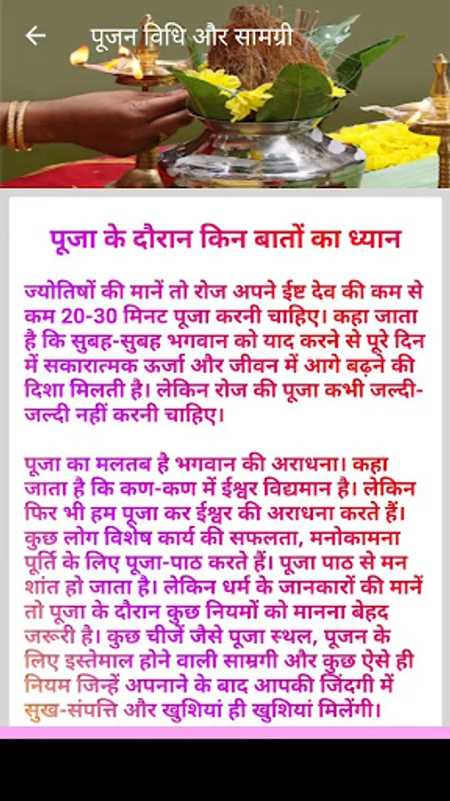 पूजा के दौरान किन बातों का ध्यान रखें और कुछ जरूरी नियमों का पालन कैसे करें। इस ऍप के द्वारा हम इन सबके बारे में जानेंगे।