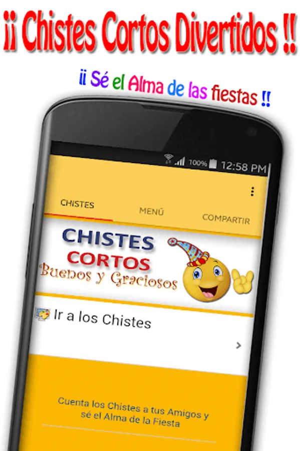 Descarga la APP con los mejores Chistes Cortos y Buenos, Graciosos y de Risa para niños y para toda la familia. Pasa un rato muy divertido. DESCÁRGALA AHORA!!!
