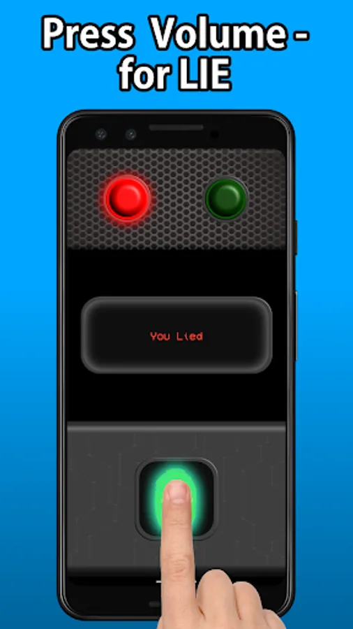 Truth or lie is not determined by fingerprint. This fake lie detector is a joke app - it does not actually detect if a person is telling the truth or a lie. This polygraph/lie detector app is designed for entertainment and prank purposes only.