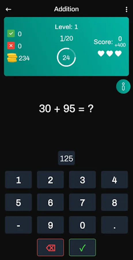 4. Find Missing: In this mode, you will be given with equation using the selected operation. There will be 1 number missing on one of the sides. You have to identify that number from the options given.