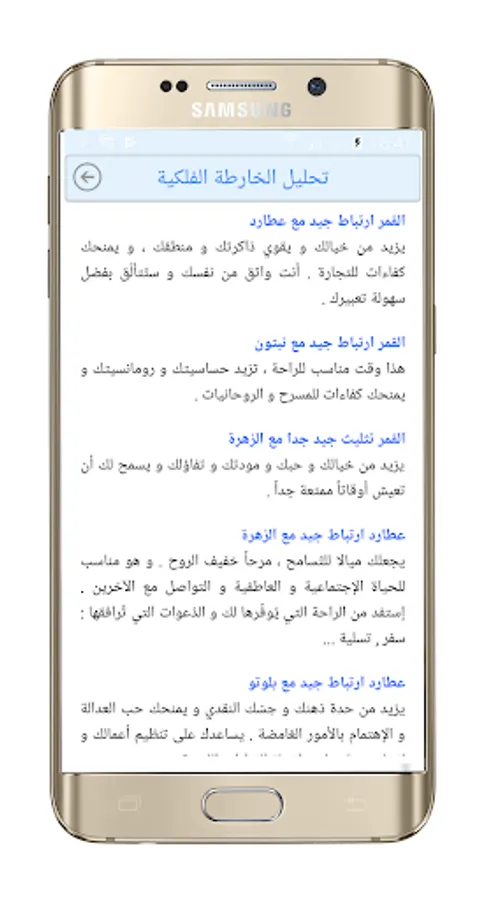 The first and only application that provides you with the ability to obtain a personal astronomical map or what is known as the astronomical chart (chart wheel) with details and explanation of the positions and positions of the planets at the time of birth and obtain a detailed report in the Arabic language, which is more accurate than the expectations and notice of the astronomical signs as the characteristics of the sign are general It is not absolutely applicable to the owner of the sign, but the interpretation and analysis of the astronomical map is more accurate and applies to us greatly, on the condition that the information entered is accurate and correct, especially the time of birth.