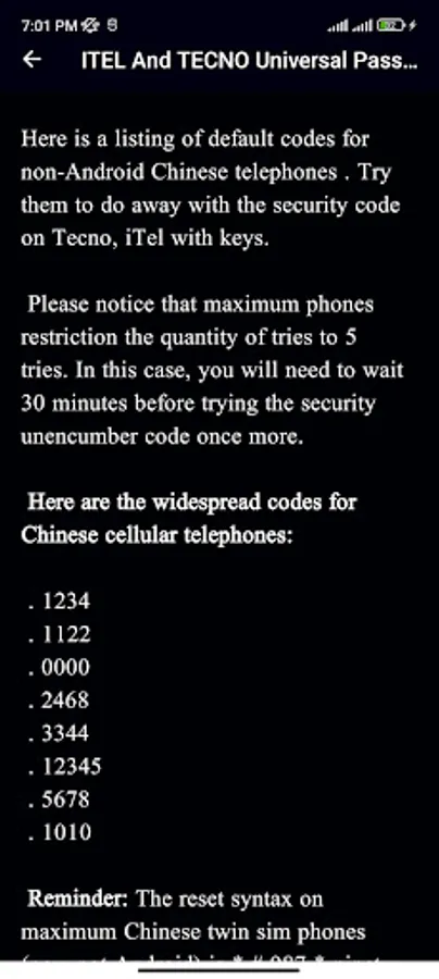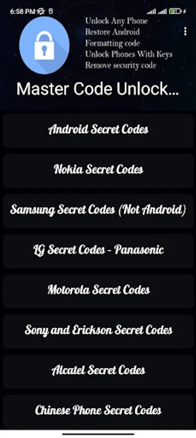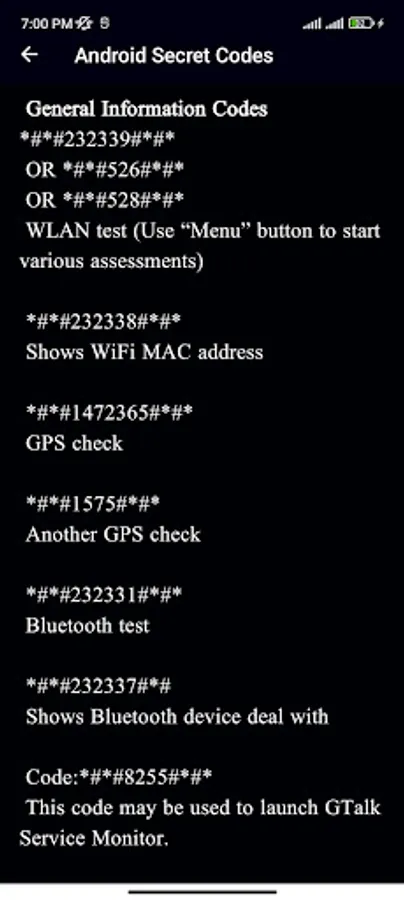 Guide For FRP Bypass and Mobile Master Code Unlock Guide/ Mobile Reset code apps.You will get Secret Code and Master Code of All Mobile guide from this app. Get more IMEI checker and Reset code Mobile Unlock code. There are lots of hidden settings and information available of your phone that can be accessed by dialing secret codes only. We hope you find the app useful.