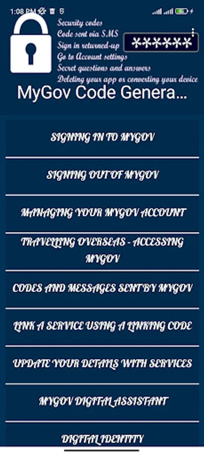 The MyGov Code Generator Guide creates trips and tricks guide app . You enter a code from the app whilst you’re signing in in your myGov account at all infromtion guide line in this app. You can’t sign up in your myGov account via the app.This apps only guideline you.