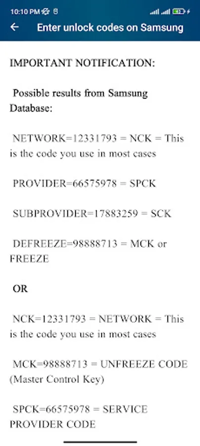 Samsung Unlock Codes