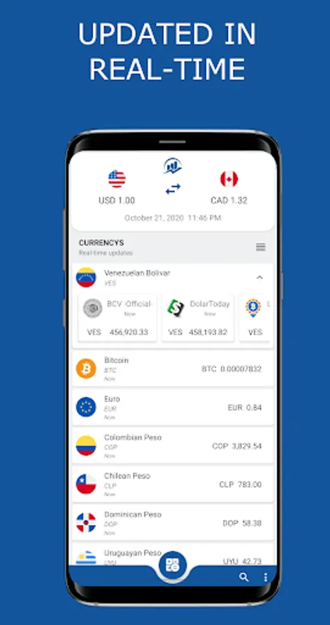 Euro, Dollar, Venezuelan Bolivar, British Pound, Bitcoin, and many more ...