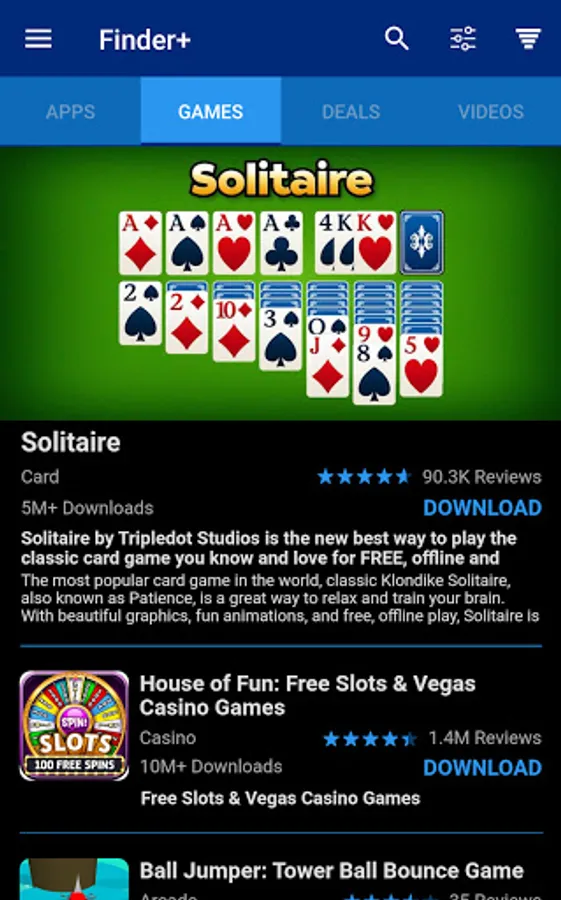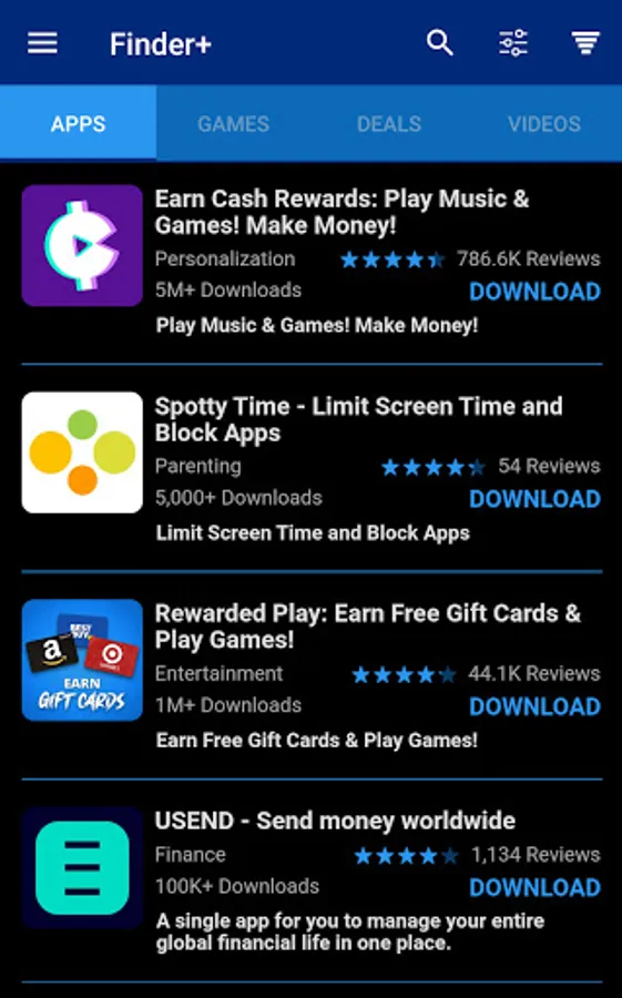 Download Finder+ and start discovering the best apps and games for you mobile device, the latest shopping deals, and fun and information short videos.