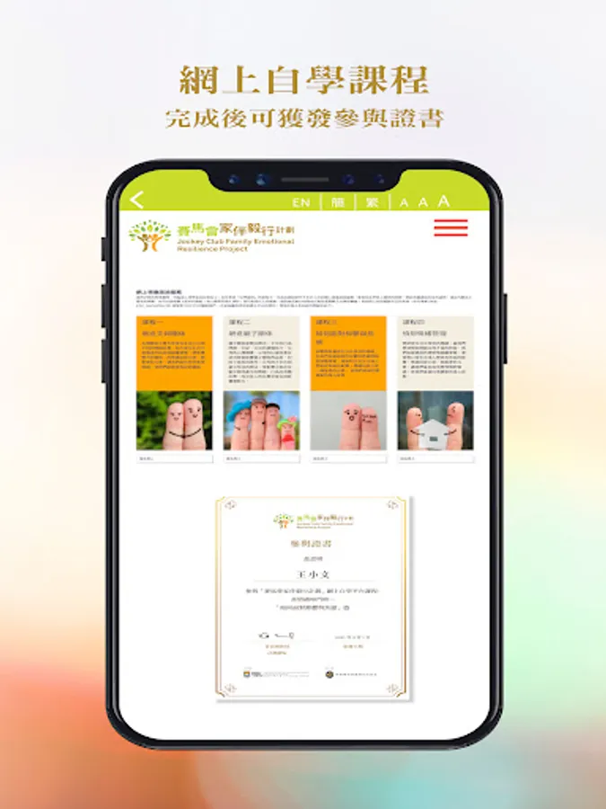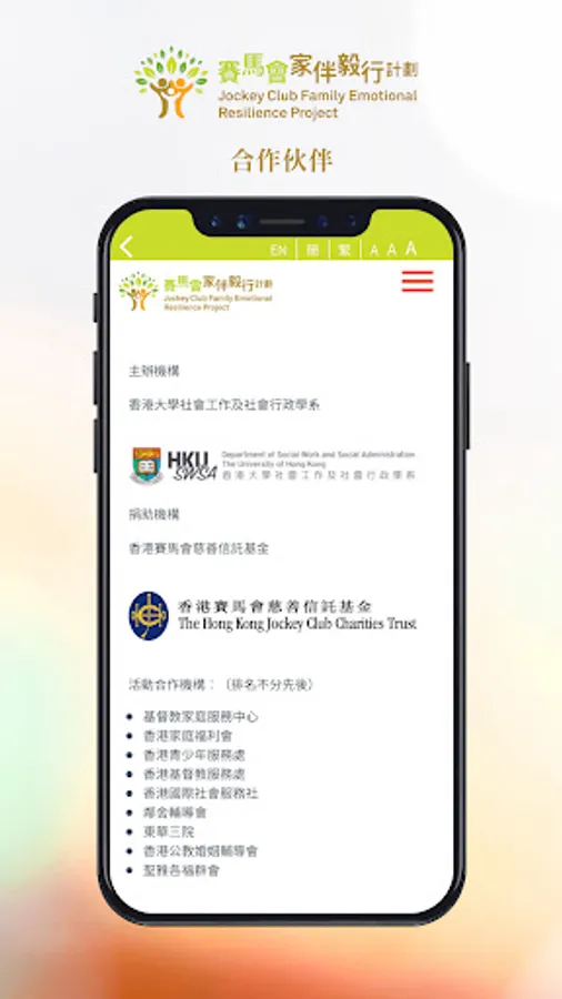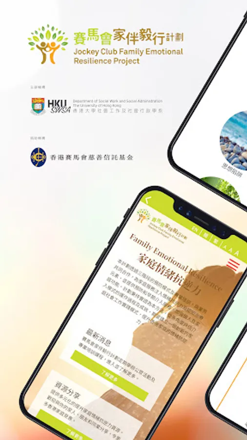 The "Jockey Club Family Walkthrough Project" is organized by the Department of Social Work and Social Administration of The University of Hong Kong, and is donated by the Hong Kong Jockey Club Charities Trust. It cooperates with the Integrated Family Service Center to provide Hong Kong with a three-stage prevention model and professional training. Of families provide preventive and early intervention services to enhance family emotional resilience and promote mental health.
