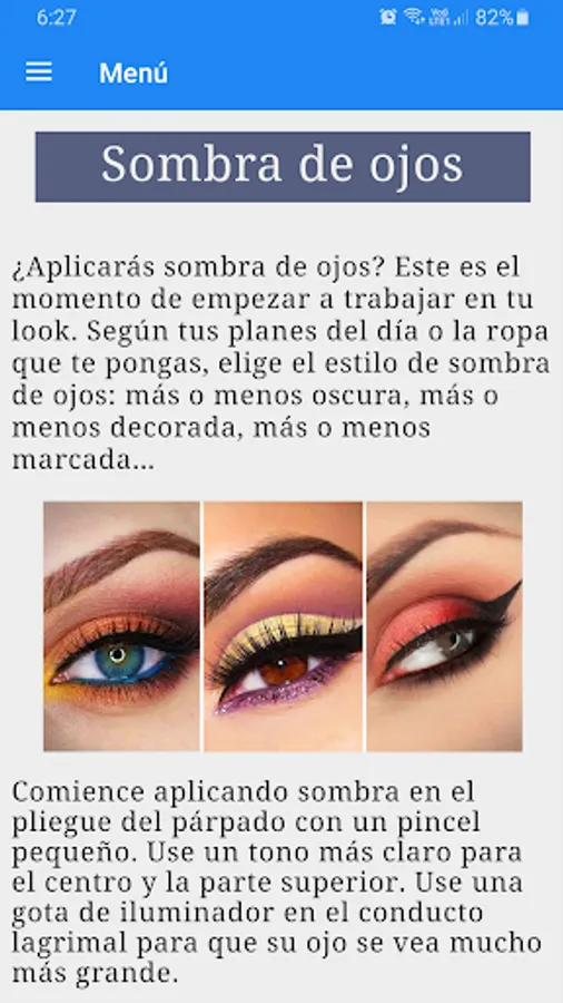 The app "Guide to learn to make up" contains an instructive manual that little by little guides you through all the steps that you must follow according to the technique and the materials that are needed to perform a good make-up. Makeup is undoubtedly a fundamental part of the image of women, especially if a special occasion is approaching that merits it.