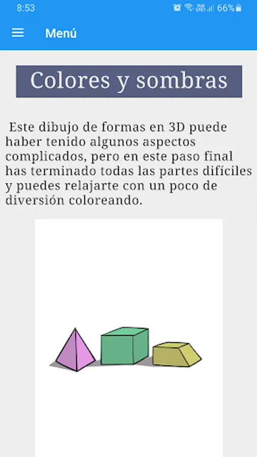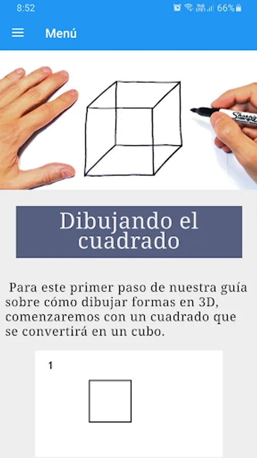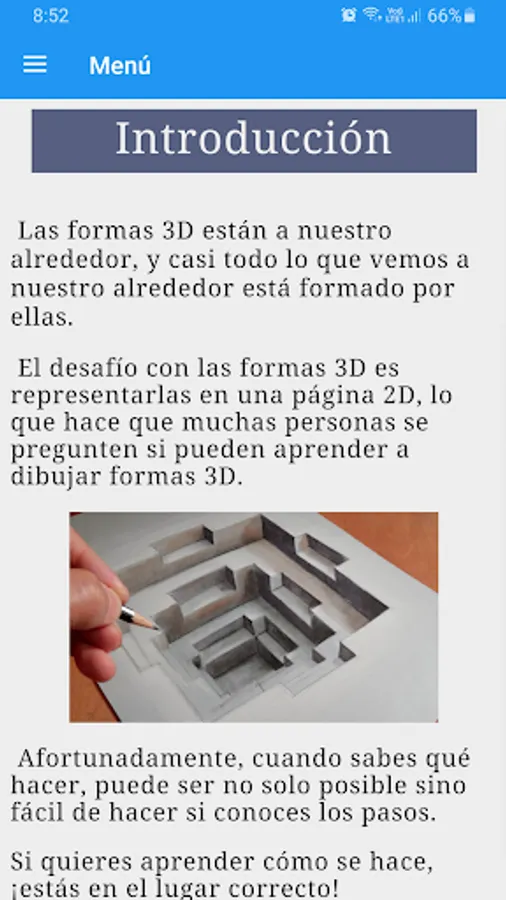 The app "How to draw in 3D step by step" gives you an instruction manual completely in Spanish that takes you by the hand so you can learn to draw in 3D, from a simple cube to a black hole. No matter you are at home or outside, or just want to pass the time, here you will be taught how to draw various different objects and create amazing art regardless of your skill level.