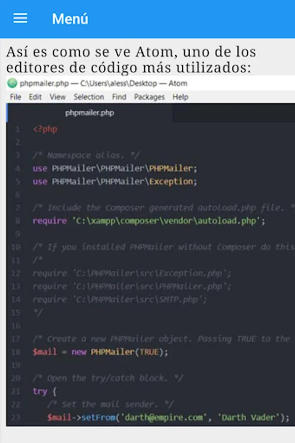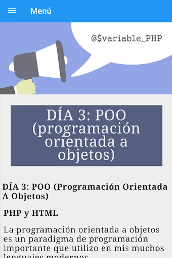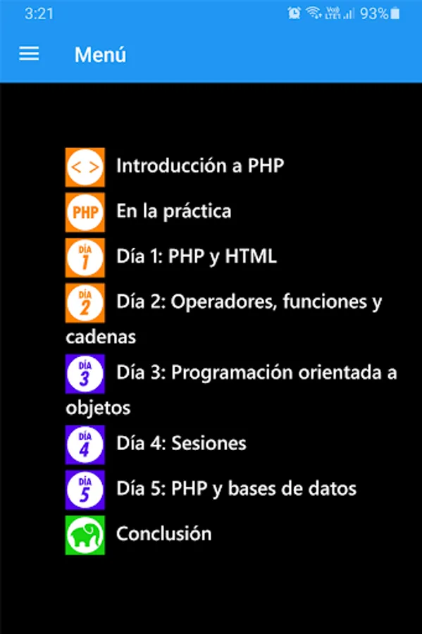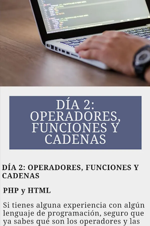 The app "How to program in PHP from scratch" brings you a course in Spanish that teaches you the bases required to start programming in that language, regardless of whether you are a beginner. And if you're already familiar with HTML, CSS, and JavaScript, all the more reason you should dive into this topic right away!