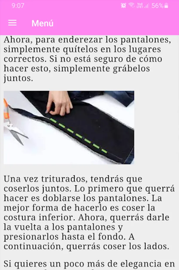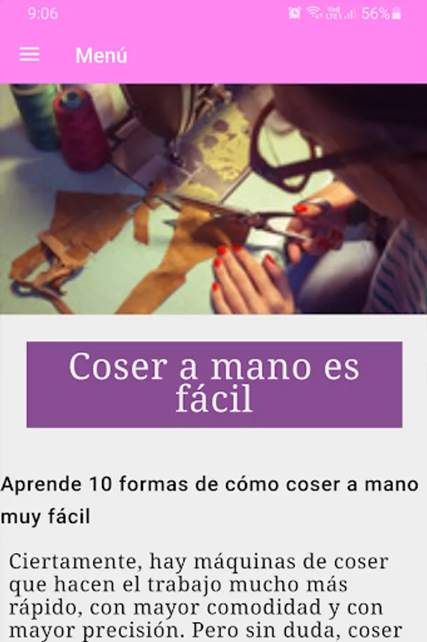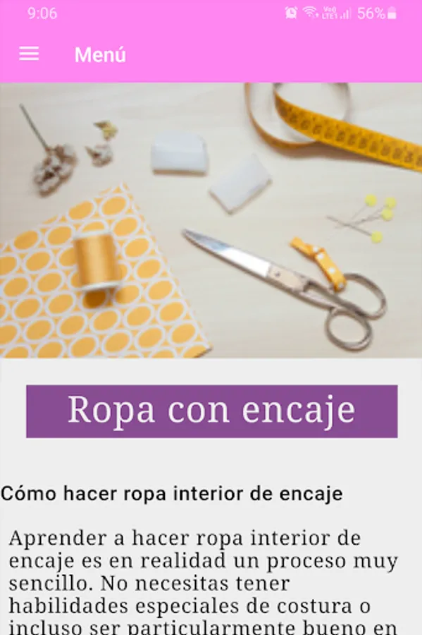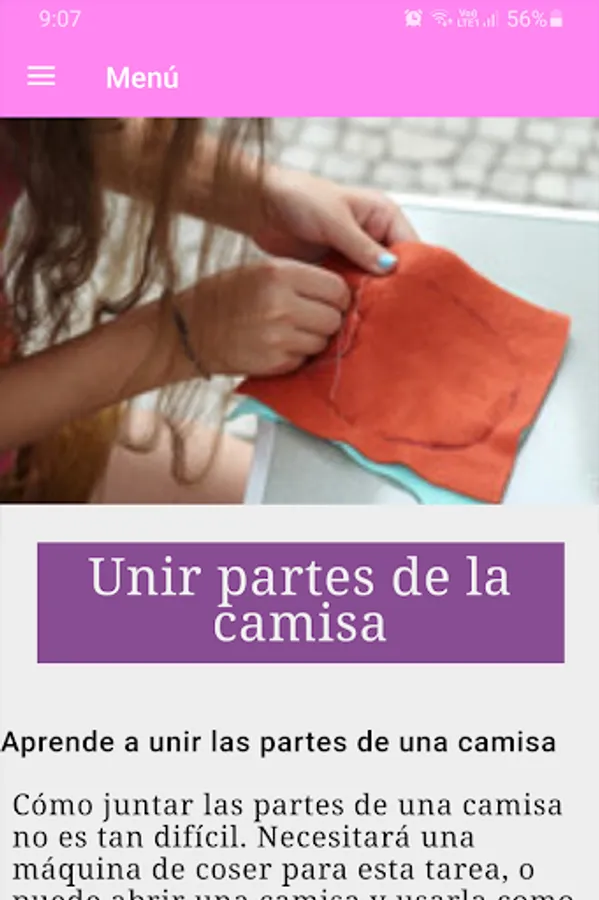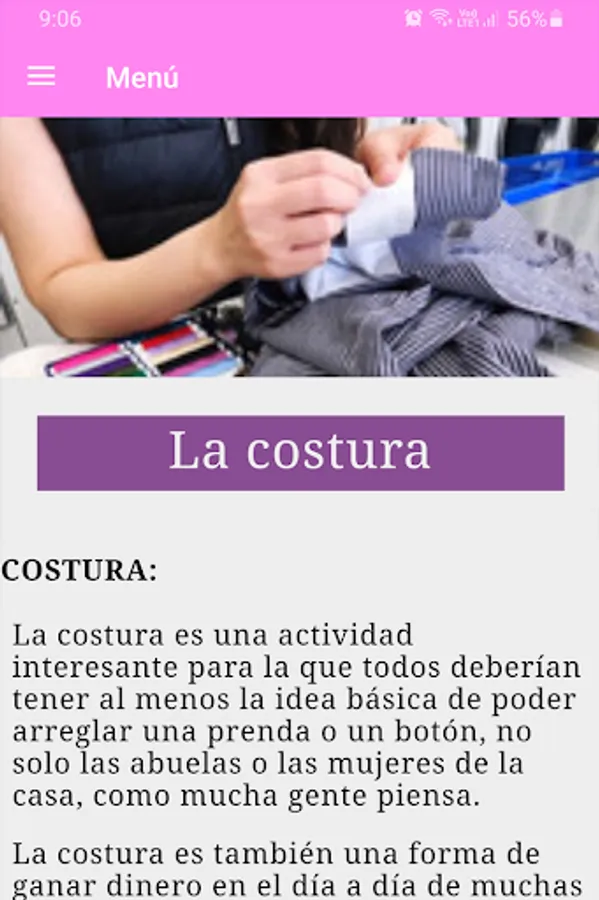 The app "Course: learn easy sewing" offers you a manual entirely in Spanish, which contains the ideal information to learn from scratch and progressively how to sew different types of fabrics. You will learn from how to use a sewing machine to how to make molds or patterns by yourself, thus allowing your imagination to fly in the textile world.