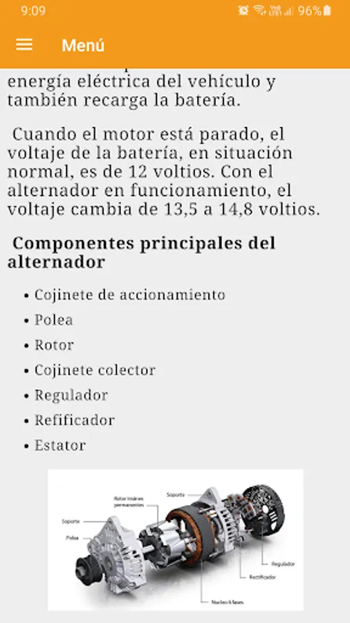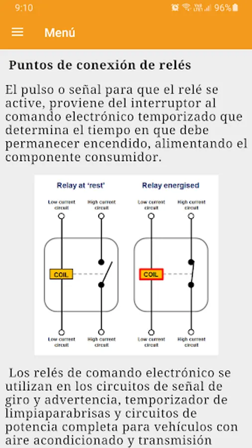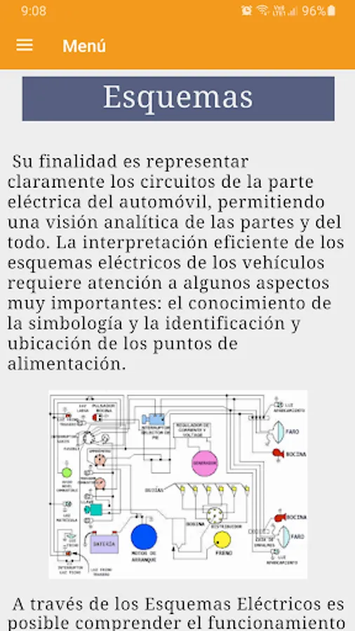 The "Automotive Electricity" app gives you a course completely in Spanish that teaches you each of the electrical systems that make up a vehicle. With this basic course you could even learn operational and technological skills of the occupation and of the operational processes of the maintenance, repair and control of a car.